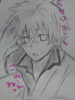 あ、これ紫木嬢が遅刻のお詫びにって私のために描いてくれた銀ちゃん!ブログから掻っ攫ってきたけど文句は言わせねえぜ!笑
